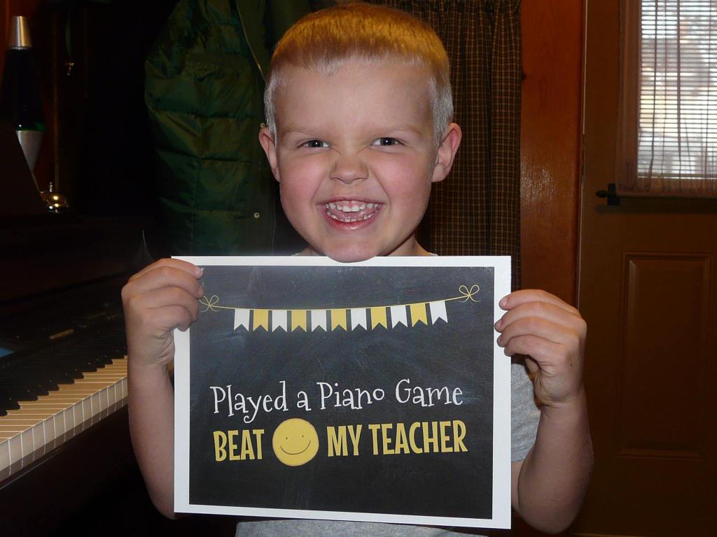 Gail: He is a great little guy. The time you take to help him between lessons really makes a big difference. At every lesson, I know he will play the songs and do all the requested work. But before he leaves, he will *always* ask if we can play a piano game – and we usually do!